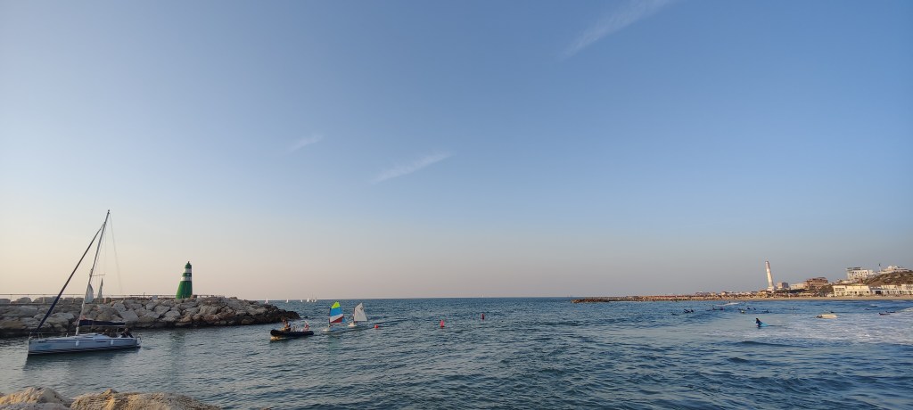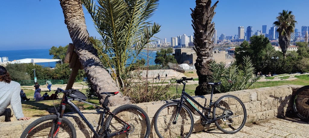 I mean the one that starts in the morning. I woke up 5:41 this time but luckily fell back in sleep and woke finally when my alarm clock went off at 8 AM. I had booked a bike tour for myself on the previous day, and it started at 9:30. So I took the scooter again just outside on the street and drove down to the beach area again. Still, no traffic and I could cruise easily on the main road. Once I reached the promenade the bike started to act strangely and slow down when the gas throttle was down. I guess the battery was dying. I finally got tired of this and changed scooters. I had to because thanks to all the problems I was running out of time. So, I took another one which was fully charged and drove to the rendezvous spot. Just in time in fact. The guide was waiting but he was also a bit surprised because he wasn’t waiting for me. He was waiting for a woman. For some reason, my name in the booking had given him and idea that I was a woman. So, there was a nice women’s bike with a red helmet and a seat all the way down. Instead, he got a Viking-looking bloke that luckily didn’t mind the red helmet or the bike for that matter. It also turned out to be a private tour because no one else had booked it. Suited me just fine. I was happy that I got the guide all for myself. He was in his 60s, born in South Africa to a pair of Jewish parents and been living in Israel already from the 1960s. We started to tour along the coastline all the way to Jaffa. Jaffa is a historic town and port that has been on this coast for thousands of years through all the empires that have ruled the world. And it almost got bulldozed down during the present state of Israel because it was inhabited by criminals, drug addicts etc. In the last hour, a local architect saved it by showing the Tel-Aviv city officials the potential this place could have. It worked and nowadays even some houses that look like they should be bulldozed down are worth millions because of their potential in the real estate market.