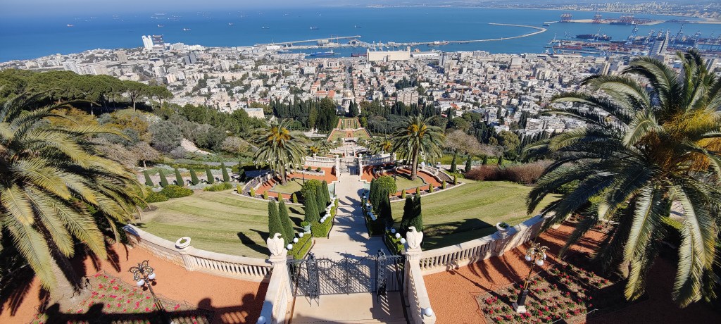 Trains, yippee! The plan was to take the train to the northern part of Israel and visit the towns of Haifa and Akko (or Acre in some versions). It took about an hour to reach Haifa. The train was full of military personnel, mostly young cadets. Some with assault rifles on one shoulder and a huge bags on the other. The main attraction in Haifa is the Baháʼí Terraces, or the Hanging Gardens. It is basically a religious site including 19 terraces and more than 1,500 steps ascending the mountain. Mount Carmel is the main culprit there and the beautiful park is now a Unesco heritage site. To get there is another matter. I have never seen a tourist attraction that is so difficult to reach (being in the centre of a town). To start with I had a brilliant plan to attack the park from above and walk through the park down to the centre of Haifa again. Let’s just say the plan had some flaws. The first was that the Mount Carmel was more of a mountain that I was expecting. I was happy to see that there was a cable car ride that took you up the hill. I naturally took it expecting it to reach the monastery that was supposed to be just next to the gardens (according to some ancient texts). It wasn’t that monastery, but a different one. So to reach the upper terraces I had to walk another 3 km up the hill. It was nice cardio though, about 5% incline and 40 minutes in a row. When I finally reached the summit then the view was worth it. There is a Balcony up there with a view of Haifa and the gardens. Plus three guards who are interested in what’s in your backpack. After the pictures, I was ready to take the beautiful pathway