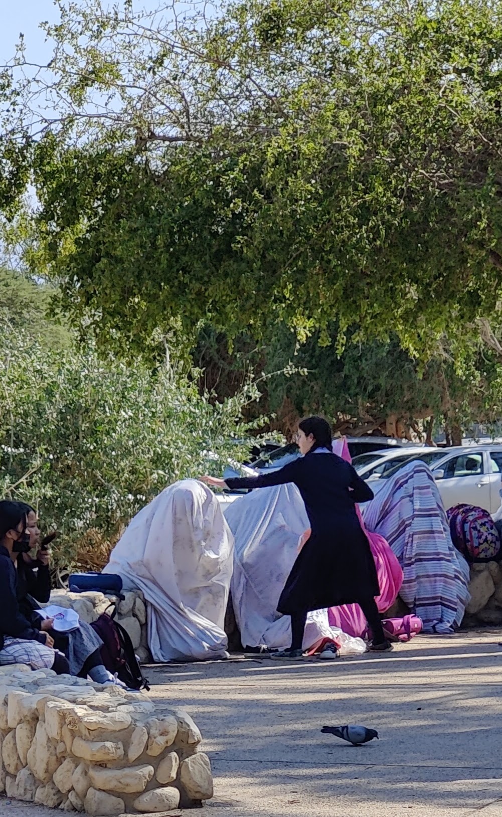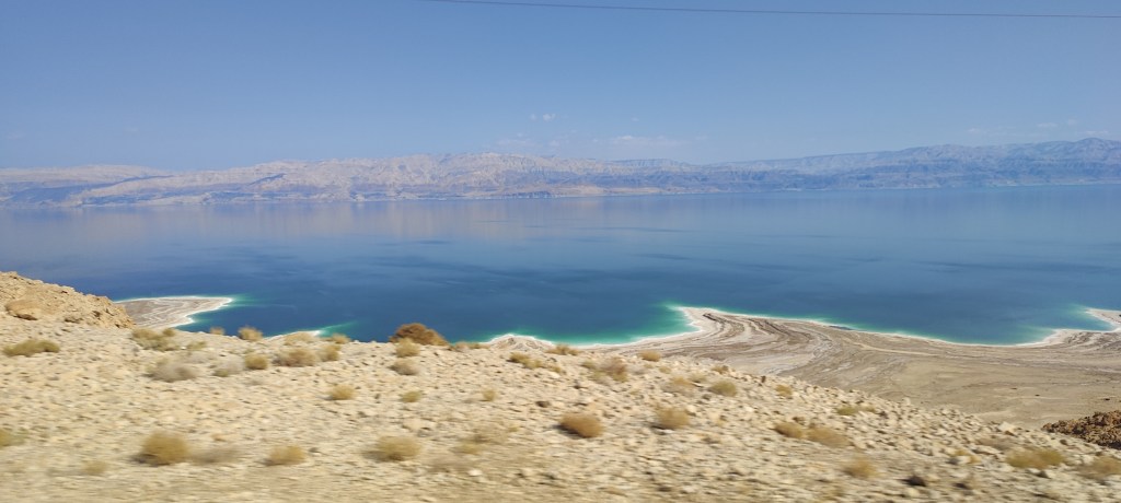 Masada, Ein Gedi, and The Dead Sea. Woke up at 5 AM because the tour started already at 6:30 in the morning. Unfortunately, some alarm outside the apartment woke me already at 4:45. Took a Lime scooter through the empty city to the tour starting point and went on my first big bus tour in a while. First, we drove to Jerusalem and picked up some more tourists from there. After that continued on over the hills to the lowest area in the world around the Dead Sea. The first destination was the fortified hill on Masada. A place that was very important in Jewish history about 2000 years ago. Now it’s a national park on Unesco’s heritage list. From afar it’s just another part of the mountain. On closer inspection the now in ruins fortress contained storehouses, barracks, an armoury, a palace, and huge cisterns that were refilled by floods. In order to inspect it closer, you can take the winding Snake Path up the hill, which looked like a really terrible idea. The much better option is the cable car. Up on the plateau, it’s like any archaeological site with a lot of rocks. But a guide with the stories makes the place come alive. If that doesn’t help then you can always find the movie called Masada (1981) that is filmed in the same location with Peter O’Toole in the leading role. It was really hot and sunny up there so staying in the shade and drinking water is a must.