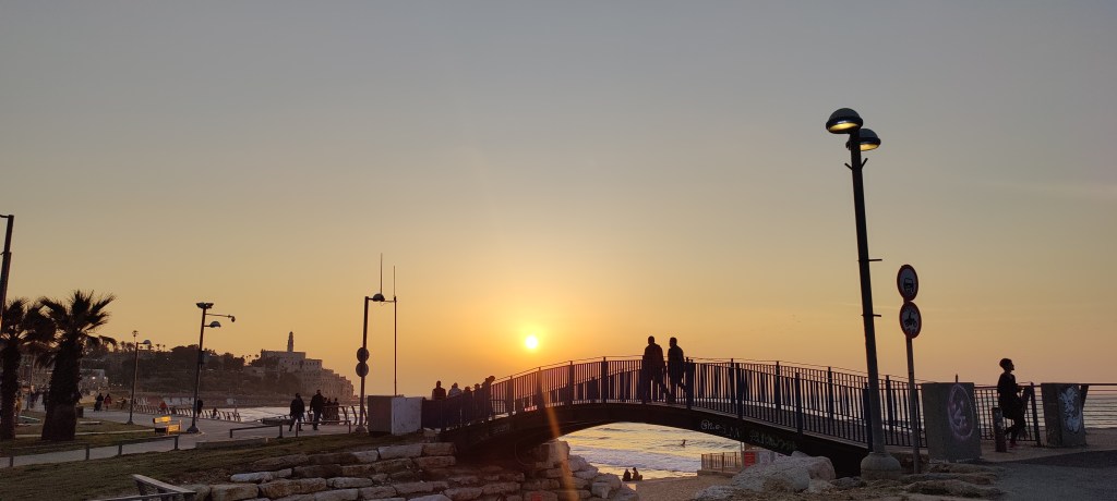 First things first and I needed a local SIM card to be able to get around. So, I walked down to the Dizengoff centre (named after the first mayor of Tel-Aviv). It’s basically a big mall with all imaginable shops. They also had a guard at the front door to check your bag for weapons. So got the SIM card with more gigabytes for the data plan I normally use in a year for the same price I usually pay for a month. The next thing to find was the Rav-Kav transport card that allows you to use buses, trains and other transportation around the country. They were supposed to sell them in kiosks on the street. It turned out that at least not in the first three. Had a nice chat with a kiosk owner in Russian who offered me to add money to one but didn’t have any to sell. Actually, Russian language you can hear a lot on the streets here. Finally got it though and headed back to the apartment. The plan for the first day was to take it slowly, get the lay of the land, walk around the city and get a feeling of where everything is. So that I did. Ended up at the seaside in the afternoon and walked along the different beaches there next to each other…Charles Clore, Aviv, Jerusalem etc. The sun sets here around 5:30 in February and as it was Friday then the sunset also marks the beginning of Sabbath or the beginning of Saturday. The Jewish people are certain that a new day begins at sunset. I had one more task planned for the day…to rent a bike. So got the Lime app running and rented an electric scooter. Good thing I did because I really needed it on the next morning. Riding a scooter on Friday evening in Tel-Aviv is really easy because everybody is home with their families and traffic is non-existent. So I went to see the Rothschild boulevard and left the bike there for the next riders. Surprisingly the streets around the boulevard were full of people. As traffic was gone then the restaurants had basically taken over the streets and filled them with tables and people. But for the most part the city was empty and quiet.