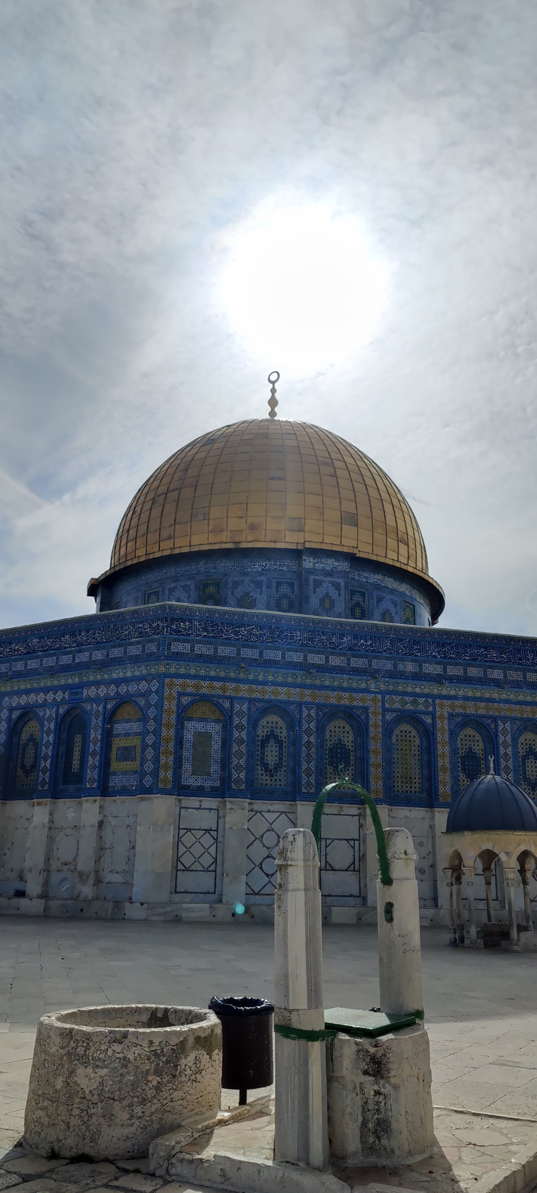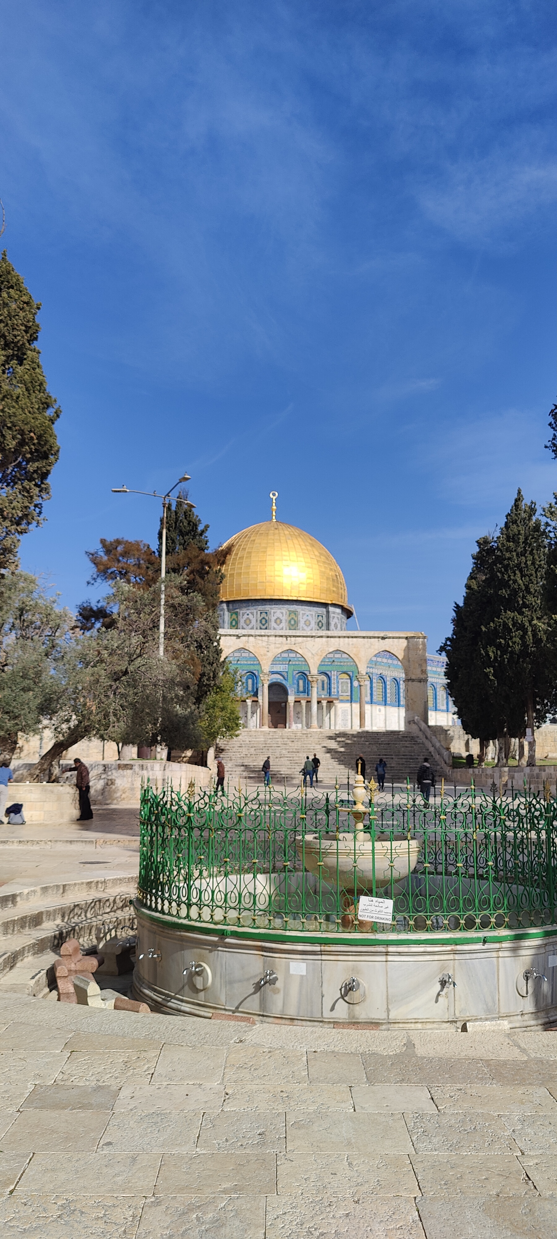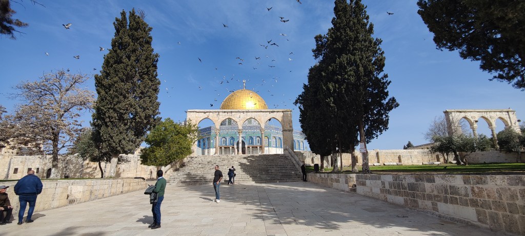 There is a small opening next to the entrance to the Western Wall – one for men, one for women and one for the mount. Without any sign on it. Luckily another friendly guy with a machine gun pointed me to the right opening. The pathway went by the wall and there I was – inside the historically and religiously significant site. And the sun came out. The Temple Mount is surrounded by retaining walls (including the Western Wall) that were built during the reign of Herod the Great for an expansion of the temple. It includes three monumental structures – the al-Aqsa Mosque, the Dome of the Rock and the Dome of the Chain – and four minarets. The Dome of the Rock is probably the most famous of them all it stands by itself on the man-made plateau and its golden dome is seen from afar. It’s Jerusalem’s most recognizable landmark for sure. Inside the mosque is off-limits of course.