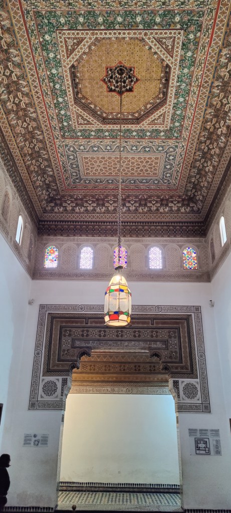 It was a guided city walking tour (https://www.airbnb.com/experiences/909455). The guide’s name was Abdelilah (Abdo in short). Born and raised in Marrakech and a licensed tour guide by the Moroccan Ministry of Tourism. I was the only client so I got a private tour. The tour started in the famous Jemaa El Fna Square. This place is considered a UNESCO World Heritage site. After that, we went through Riad Zitoun Lakdim (16-century old neighbourhood) discussing local hammam culture and comparing these with saunas back home. The first site to visit was the Bahia Palace. This is a masterpiece of Moroccan architecture, it was built in the 19 century. The palace is lavishly decorated with Cedar wood ceilings, carved plaster, Moroccan traditional tilling and marble. All are in perfect symmetry and built according to Islam traditions. This place explained to me also very well what is the difference between different house types. In order to call it a riad a house needs a garden with trees/plants and a fountain in the middle of the courtyard. A dar is happy with just a fountain. There is a third type as well but I forgot the name. The entrance cost 70 MAD but it was well worth it. Then we went through some alleyways to visit Madrassa ben Yousef (a former Islamic university). It cost another 50 MAD to enter but the restoration work and architectural details there were incredible. Relating to that, my guide also explained to me that as Marrakech is under UNESCO heritage and is also called a red city, then even the shade of red colour on the houses is important when renovating them. Of course, not all houses follow that rule.
