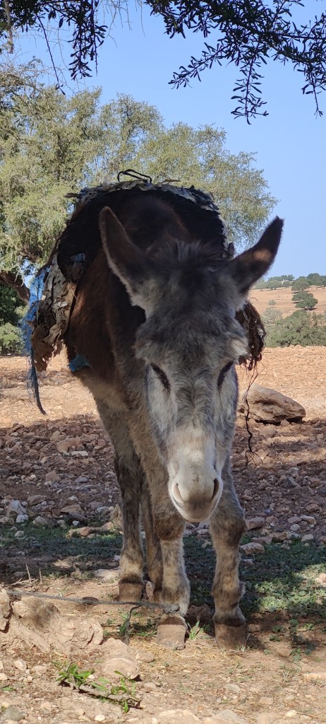 The next stop was along the roadside in an Argan Oil Cooperative. It was only around 2004 when the women in Morocco got equal rights with men. The more active women are now allowed to form cooperatives and earn their own living, selling products made there from argan tree nuts. Different oils, lotions, creams etc. Quite expensive as well.