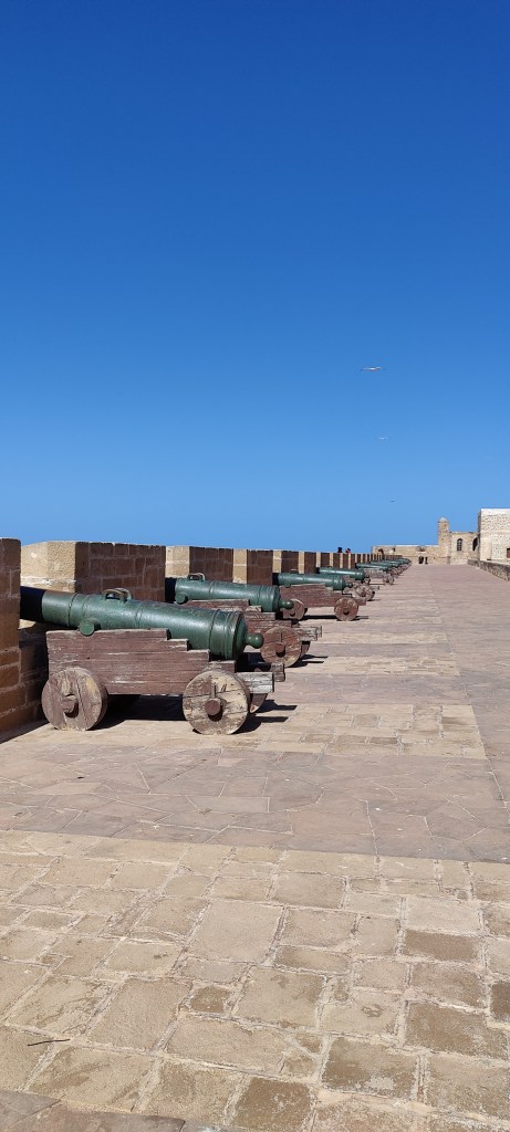 After walking through all the back streets and visiting the fortress along the city wall (where they filmed some parts of the Game of Thrones…it seems that GoT was filmed all over Europe) it was time to find some lunch. I opted to do that on one of the popular squares where I ordered the Menu du Jour, which included Moroccan soup (mainly lentils), fried squid with fries and a dessert. Now the thing to understand about desserts in Morocco is that it is not what you would expect. The dessert includes usually just fruit. In my case some oranges with spiced sauce. At the same time, they sell everywhere a staggering number of sweet cookies, cakes and biscuits. But these don’t qualify as desserts as these sweets are eaten with sweet tea seven times a day. But we’ll come back to the food later again.